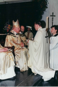 Jezus riep mensen op om Hem te volgen (Mc. 1, 15). Naast de oproep aan alle mensen van goede wil koos de Heer twaalf leerlingen uit om op een bijzondere manier met Hem verbonden te zijn en uitgezonden te worden. Toen de Heer tijdens het laatste avondmaal de eucharistie instelde, kregen zij de opdracht: “Doet dit tot een gedachtenis aan Mij.” (Lc 22, 19). Na de verrijzenis zendt de Heer zijn apostelen uit: “Gaat dus en maakt alle volkeren tot mijn leerlingen en doopt hen [..] en leert hun te onderhouden alles wat Ik u bevolen heb.” (Mt 28, 19-20). De apostelen verzamelden op hun beurt naaste medewerkers bij de vervulling van de opdracht van de Heer ontvangen. Ze stelden zeven mannen aan als diakens om mee te werken ten behoeve van de ondersteuning aan de weduwen en armen (Hd 6, 4). Reeds in de brieven van het Nieuwe Testament worden in de jonge Kerk de drie verschillende ambten aangeduid; diakonoi (diakens), presbyters (priesters) en de episcopi (bisschoppen). Ook lezen wij daar dat de overdracht van de ambten gebeurde door handoplegging en gebed.