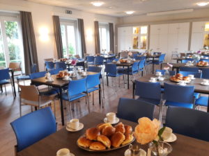 De vergaderruimte beneden kan gebruikt worden voor een groep van maximaal 8 personen.