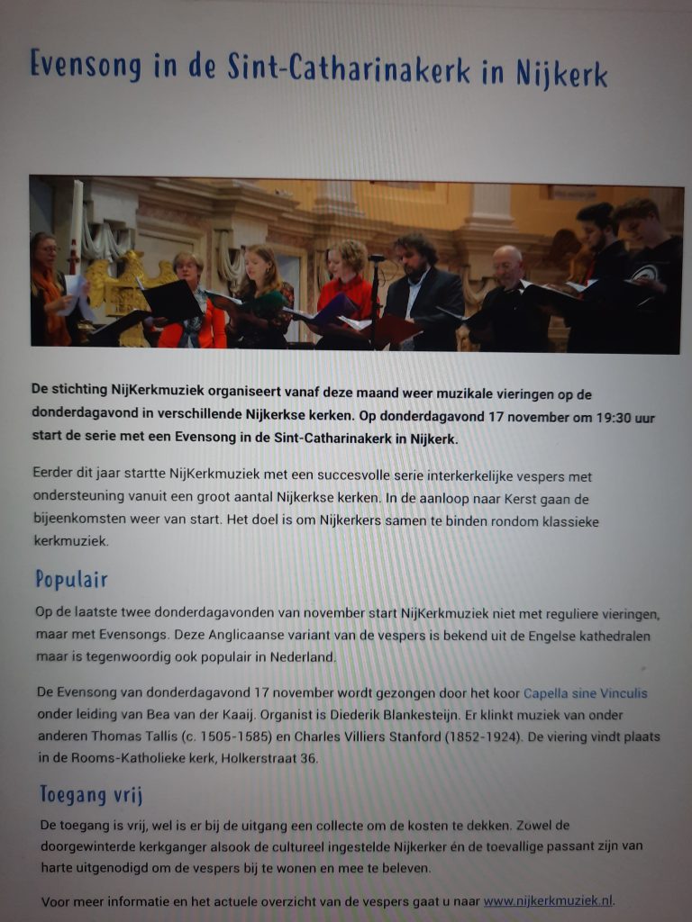 Evensong in St. Catharinakerk Nijkerk 17 november 2022