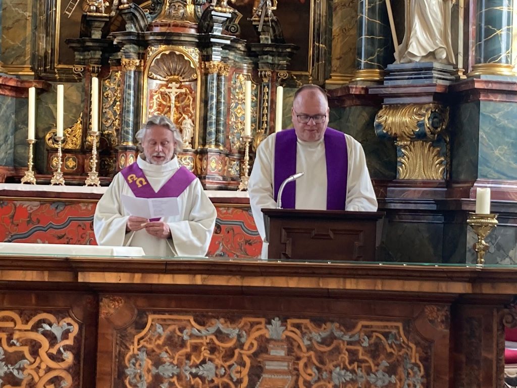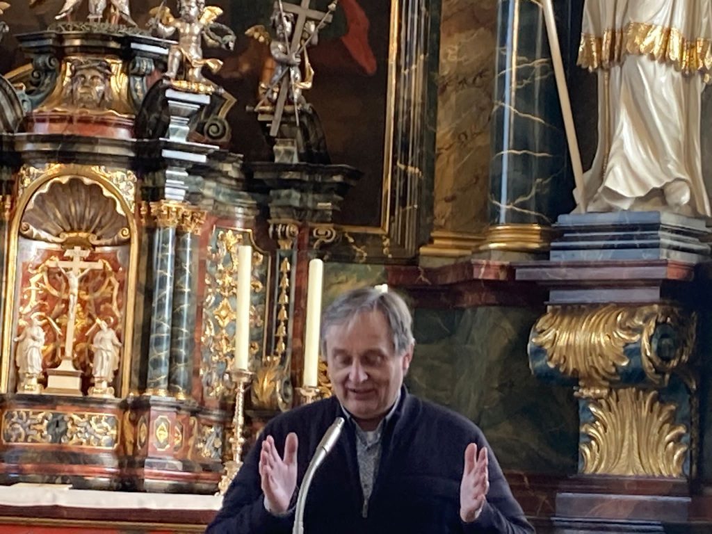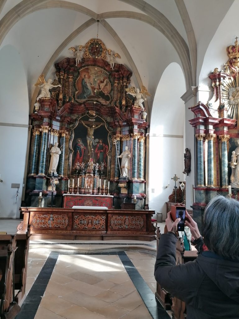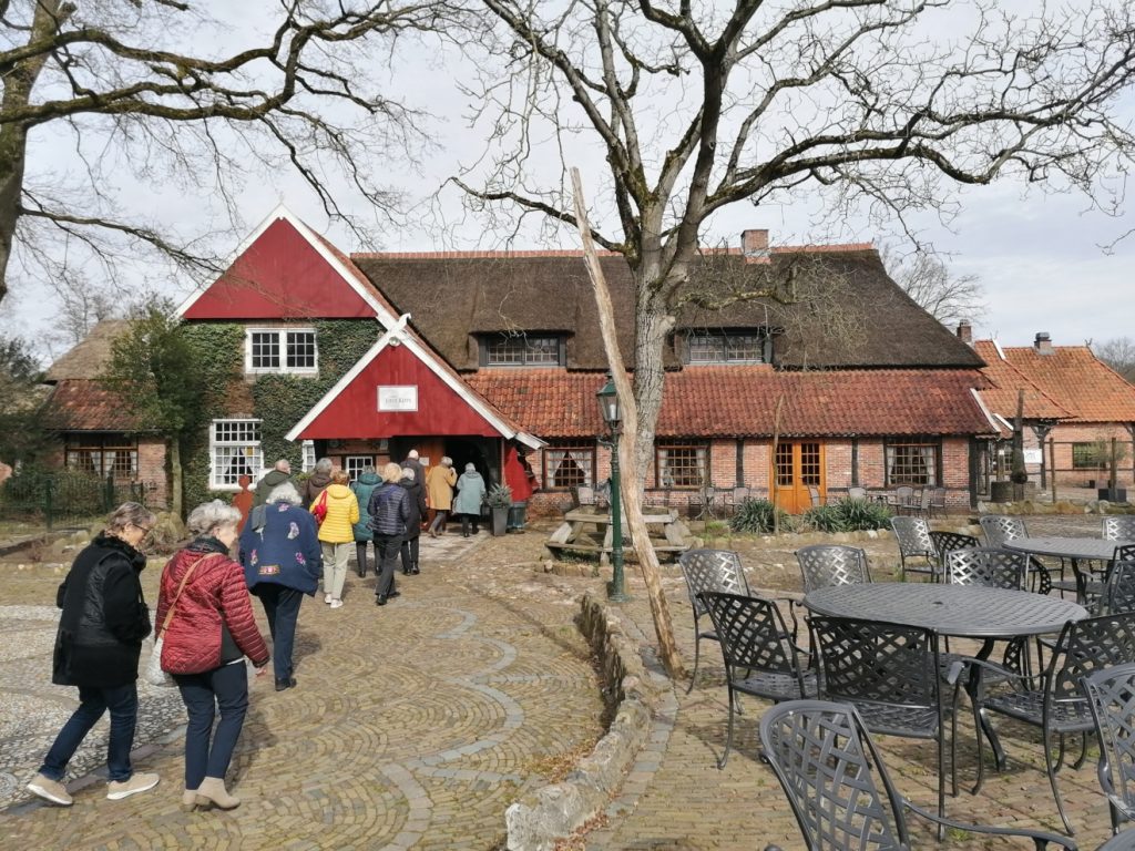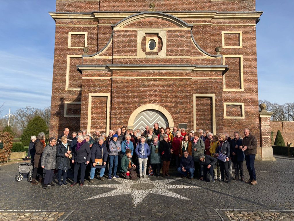 De tocht ging verder door het mooie Achterhoekse landschap naar de grens met Duitsland, waar net over de grens het dorp Zwillbrock gelegen is. Daar werd de prachtige Barokkerk St. Franciscus bezocht en namen we deel aan de vesper. Ook hier kregen we een rondleiding en uitleg over de kerk. Een bijzondere plek waar Harrold en zijn familie met regelmaat kwamen.