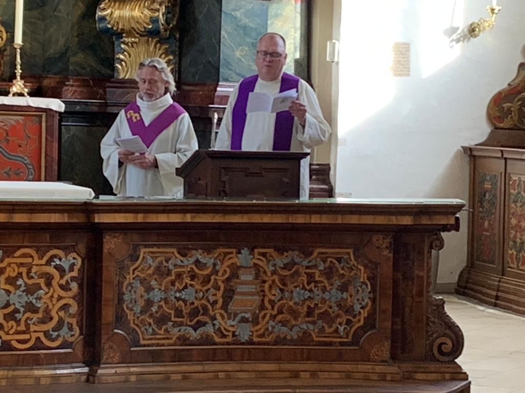 De tocht ging verder door het mooie Achterhoekse landschap naar de grens met Duitsland, waar net over de grens het dorp Zwillbrock gelegen is. Daar werd de prachtige Barokkerk St. Franciscus bezocht en namen we deel aan de vesper. Ook hier kregen we een rondleiding en uitleg over de kerk. Een bijzondere plek waar Harrold en zijn familie met regelmaat kwamen.